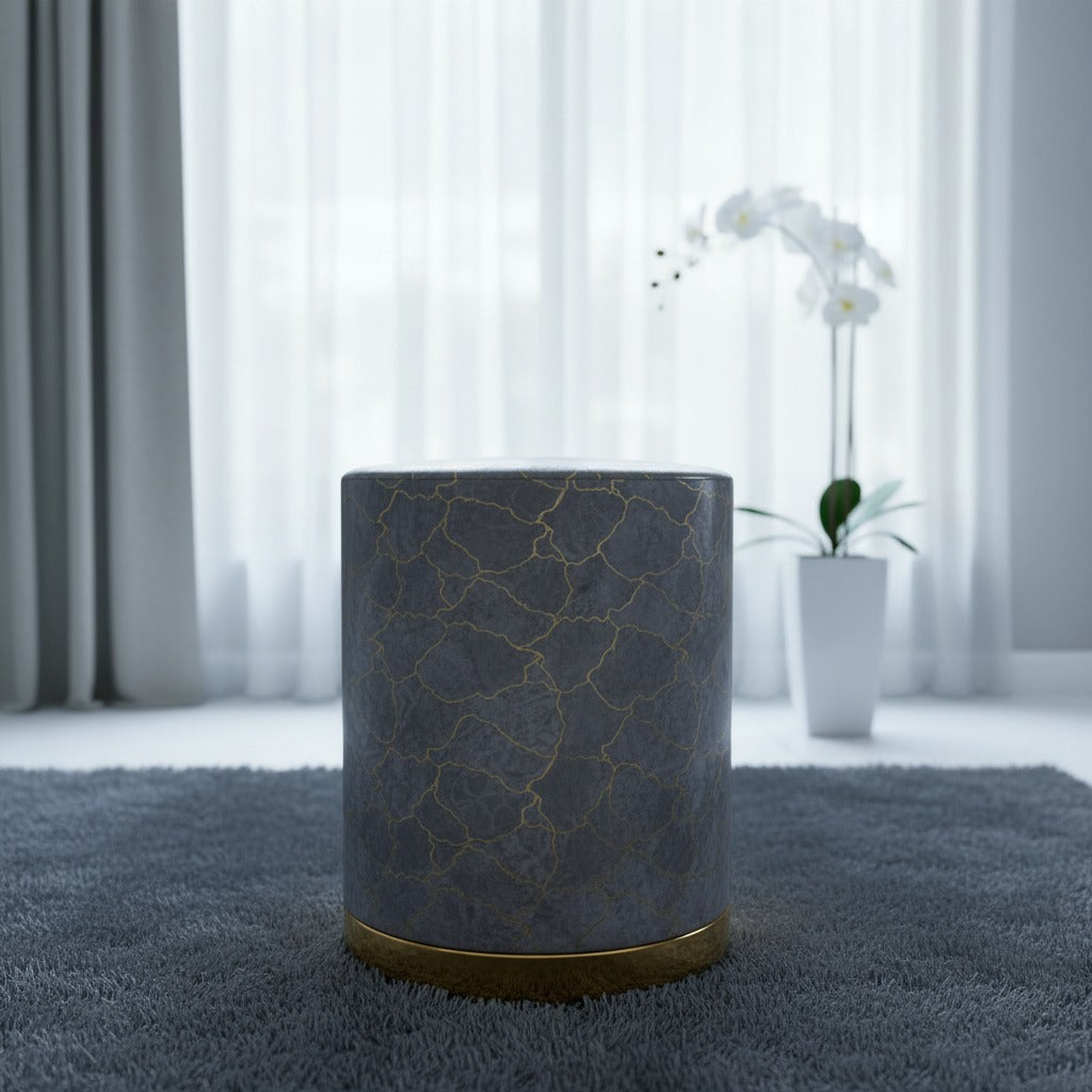 Royal Azure Marble Texture Sitting Stool with Gold Base is a statement piece designed to elevate modern interiors with elegance and comfort. Wrapped in premium-quality velvet upholstery, it features a rich royal blue marble-inspired texture that adds depth, luxury, and visual appeal to any living space. The soft padded seat ensures a comfortable sitting experience, making it suitable for daily use in living rooms, bedrooms, dressing areas, lounges, or stylish office settings.